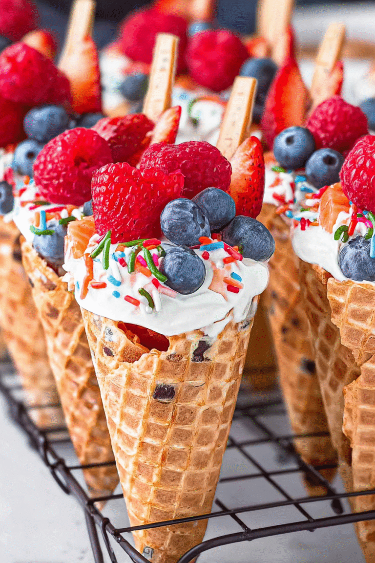 Absolutely! In fact, making the cones ahead is a great way to reduce stress on the day of your party. Once they’re cool, you can store them in an airtight container at room temperature for a day or two. If you’re making them far in advance, you might want to freeze them, then thaw them gently before filling. Just remember to assemble and fill them closer to serving time to prevent the waffle cones from getting soggy.