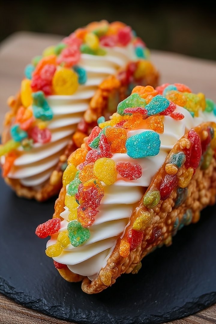 Fruity Pebbles Cheesecake Tacos