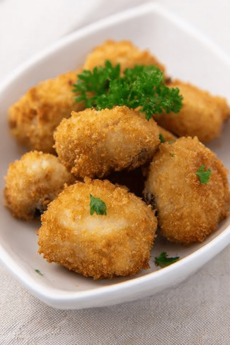 - **Eggs:** These act as the glue that holds the breadcrumbs to the mushrooms.