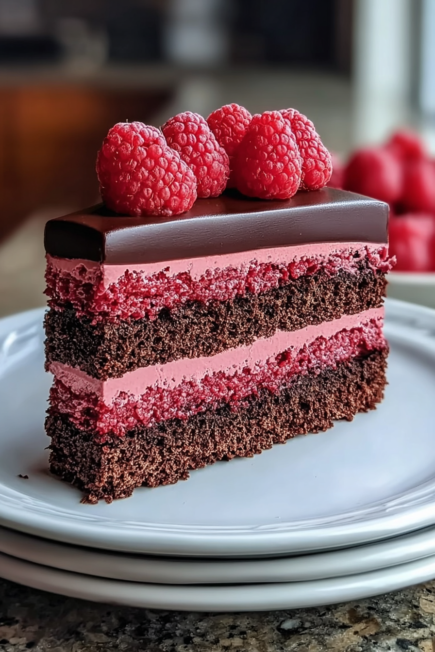 Delicious dark chocolate raspberry mousse cake recipe with detailed instructions and nutritional information.