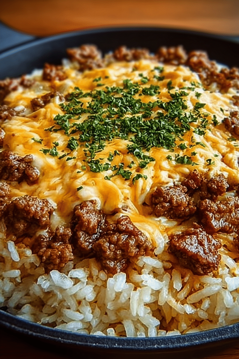 Imagine sinking your teeth into tender, juicy beef, infused with the rich, savory essence of garlic butter, all nestled on a bed of fluffy rice and smothered in a creamy, cheesy Cheddar Parmesan sauce. This Garlic Butter Beef and Rice Skillet with Cheddar Parmesan Sauce is a symphony of flavors and textures that will leave you craving more.