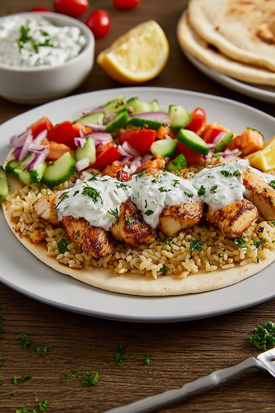 Prepare the tzatziki sauce ahead of time—its flavors meld beautifully. Don’t overcrowd the pan when searing the chicken; this ensures even browning. For extra flavor, use high-quality feta cheese in the tzatziki.