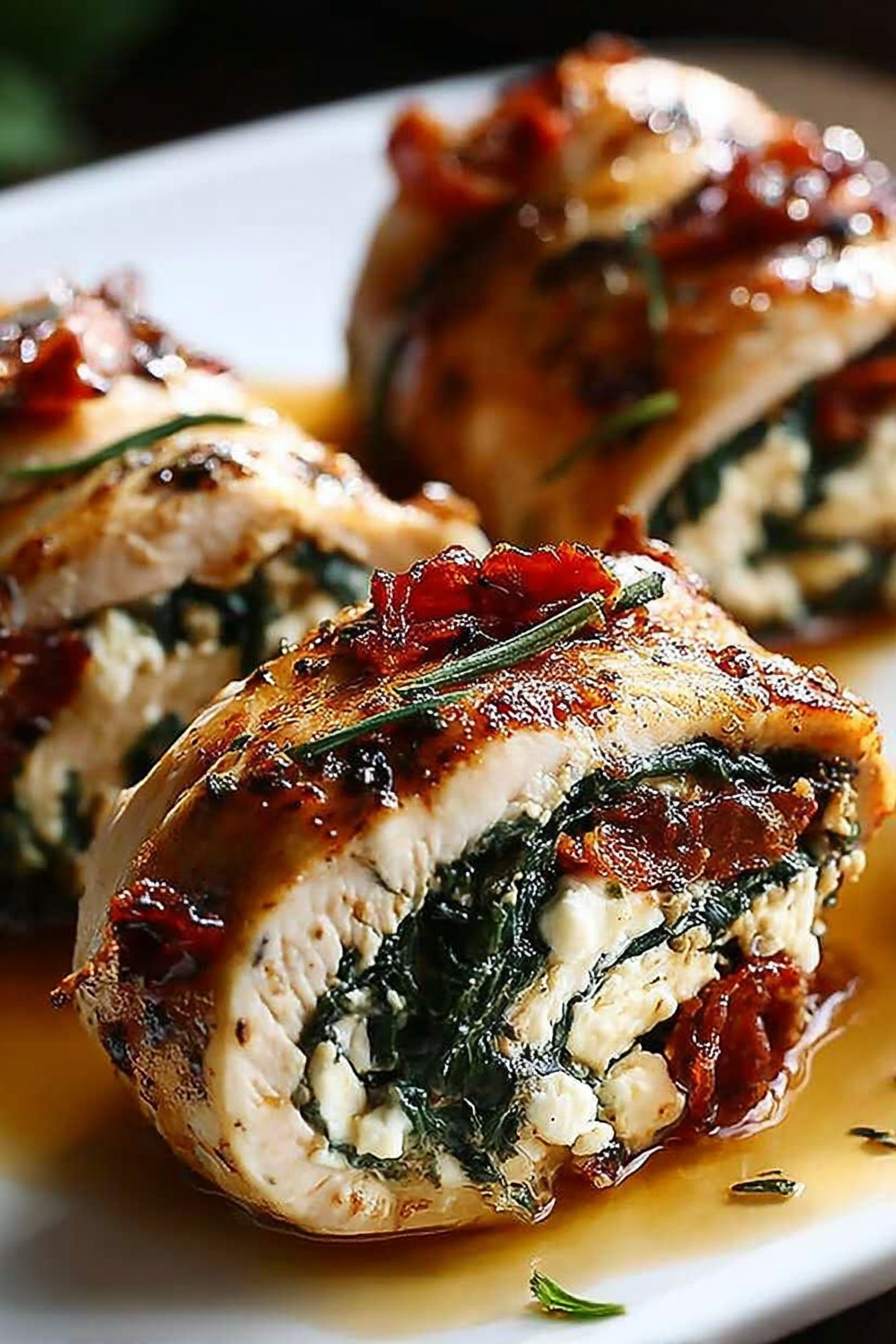 Rolled Up Chicken with Feta, Spinach, and Sun-Dried Tomatoes