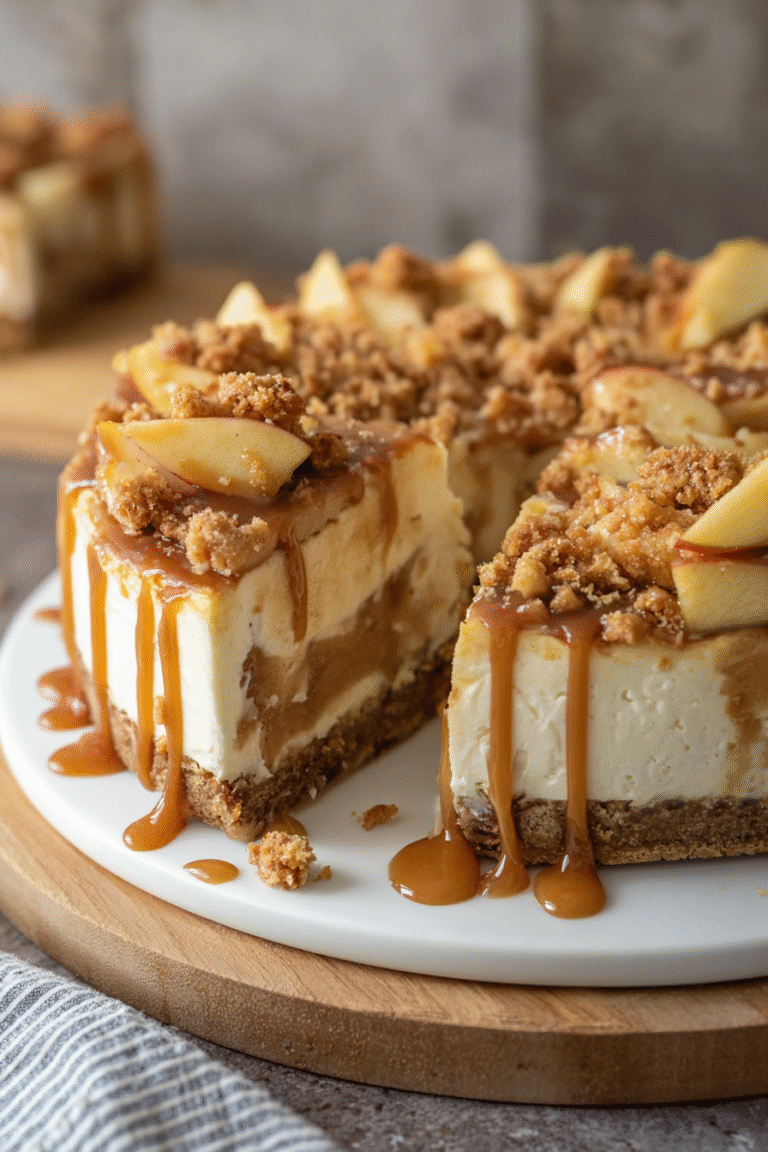 Delicious salted caramel apple pie cheesecake recipe with detailed instructions and nutritional information.
