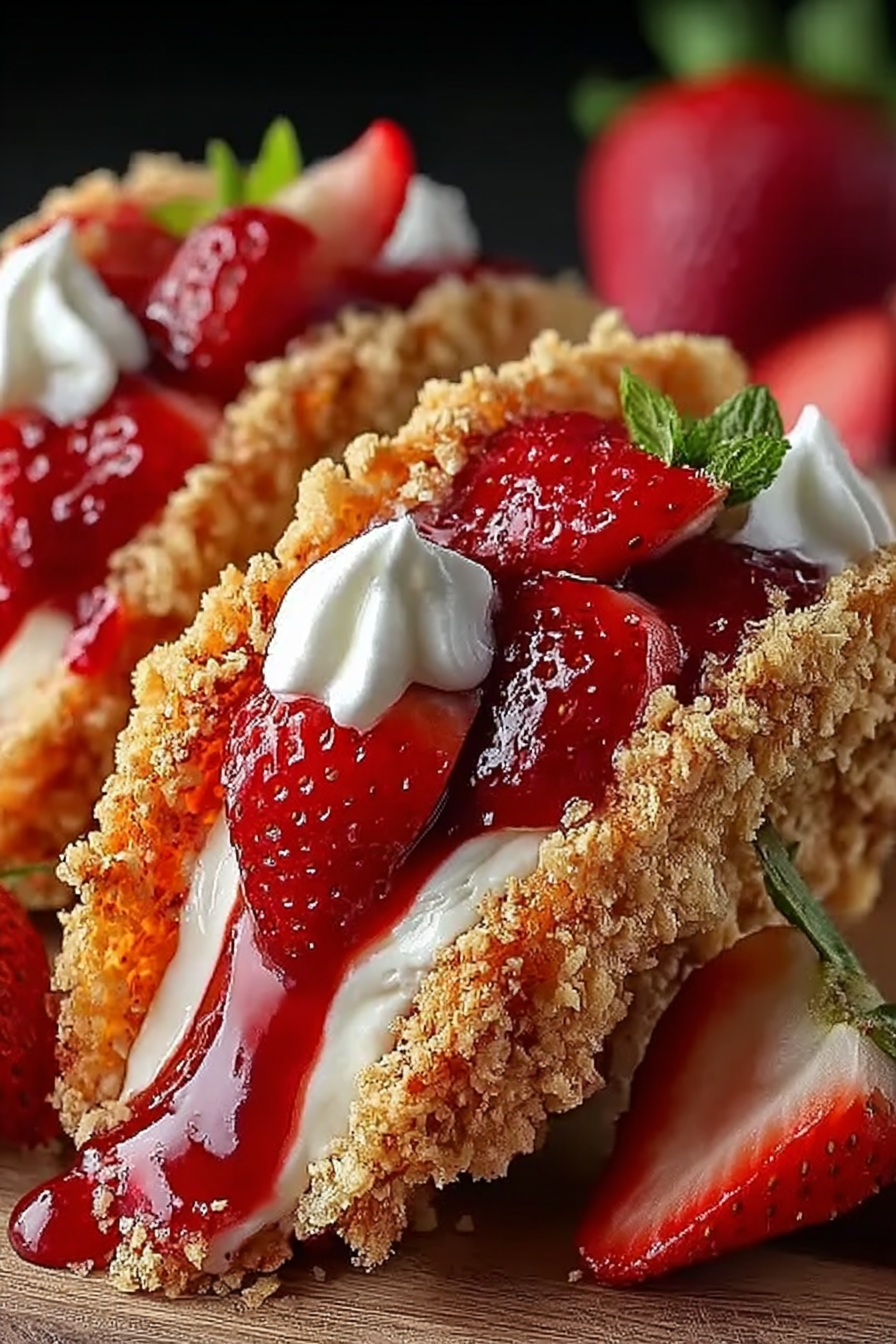 Delicious strawberry crunch cheesecake tacos recipe with detailed instructions and nutritional information.